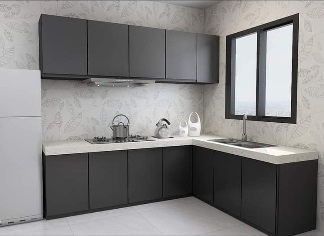 Kitchen set minimalis berbentuk straight atau lurus sangat populer digunakan untuk dapur-dapur kecil, rumah minimalis maupun apartemen. Sedangkan untuk rumahan lebih sering menggunakan kitchen set berbentuk L-shapped.